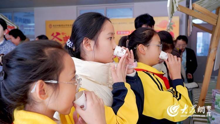 针灸二科郝婧君医生手把手教睛明穴、足三里等保健穴位的按摩方法,让孩子们掌握了“日常保健不用药”的养生技巧。滋阴润肺饮、养心安神茶……药食同源食材调配的代茶饮,清香四溢,师生们边品饮边听科普,在味觉体验中读懂冬季的中医智慧。