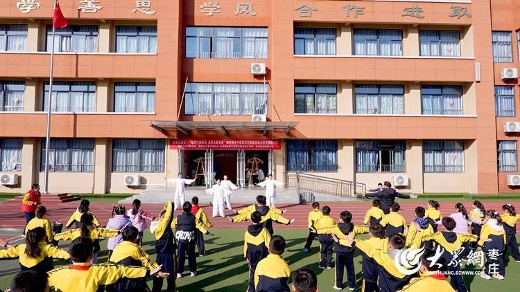 北京中医药大学东方医院枣庄医院市中院区护理团队带着同学们打起八段锦。伴着轻快的背景音乐,孩子们跟着学习“攒拳怒目”“摇头摆尾”等气候适配核心动作,在舒缓的节奏中感受身体与自然的对话。